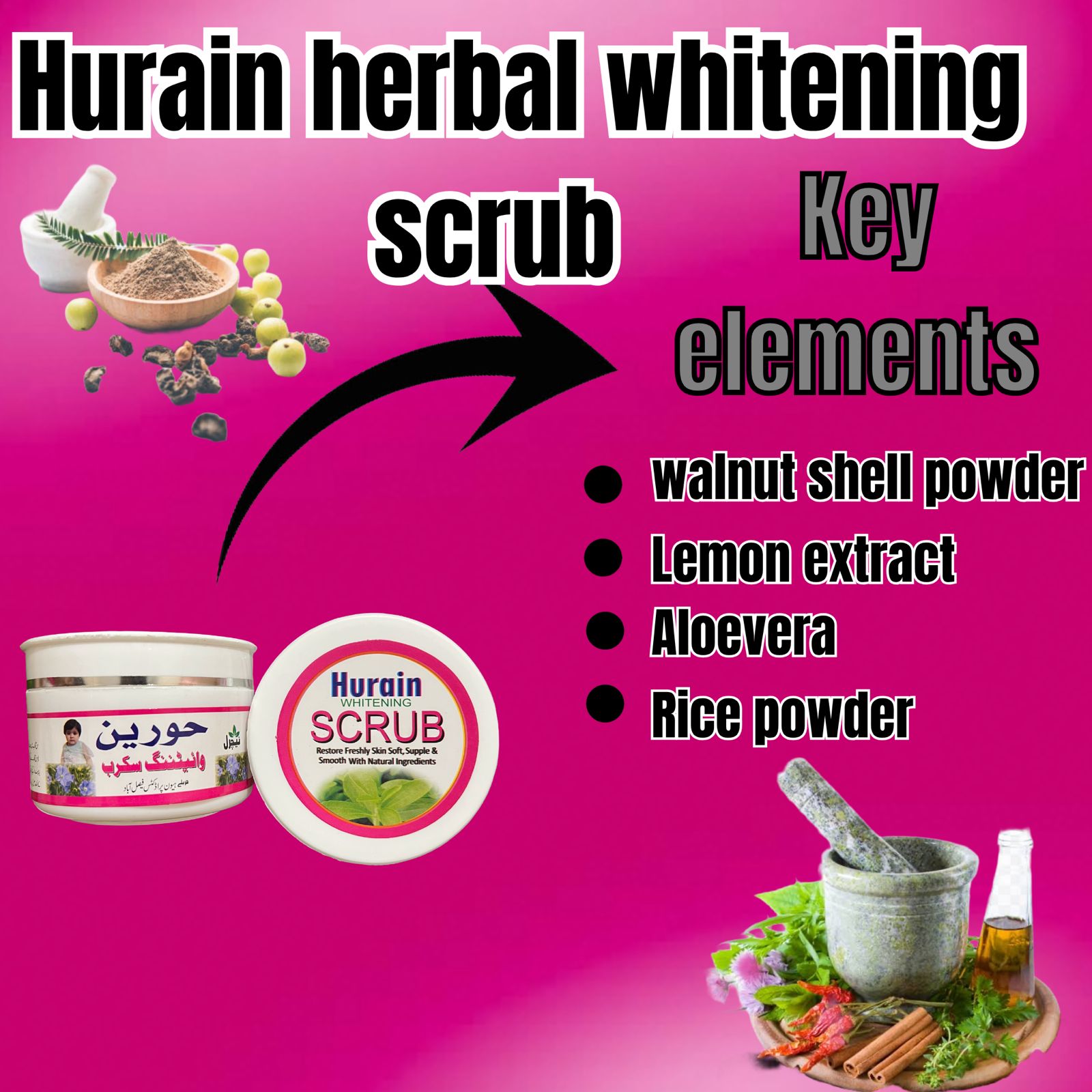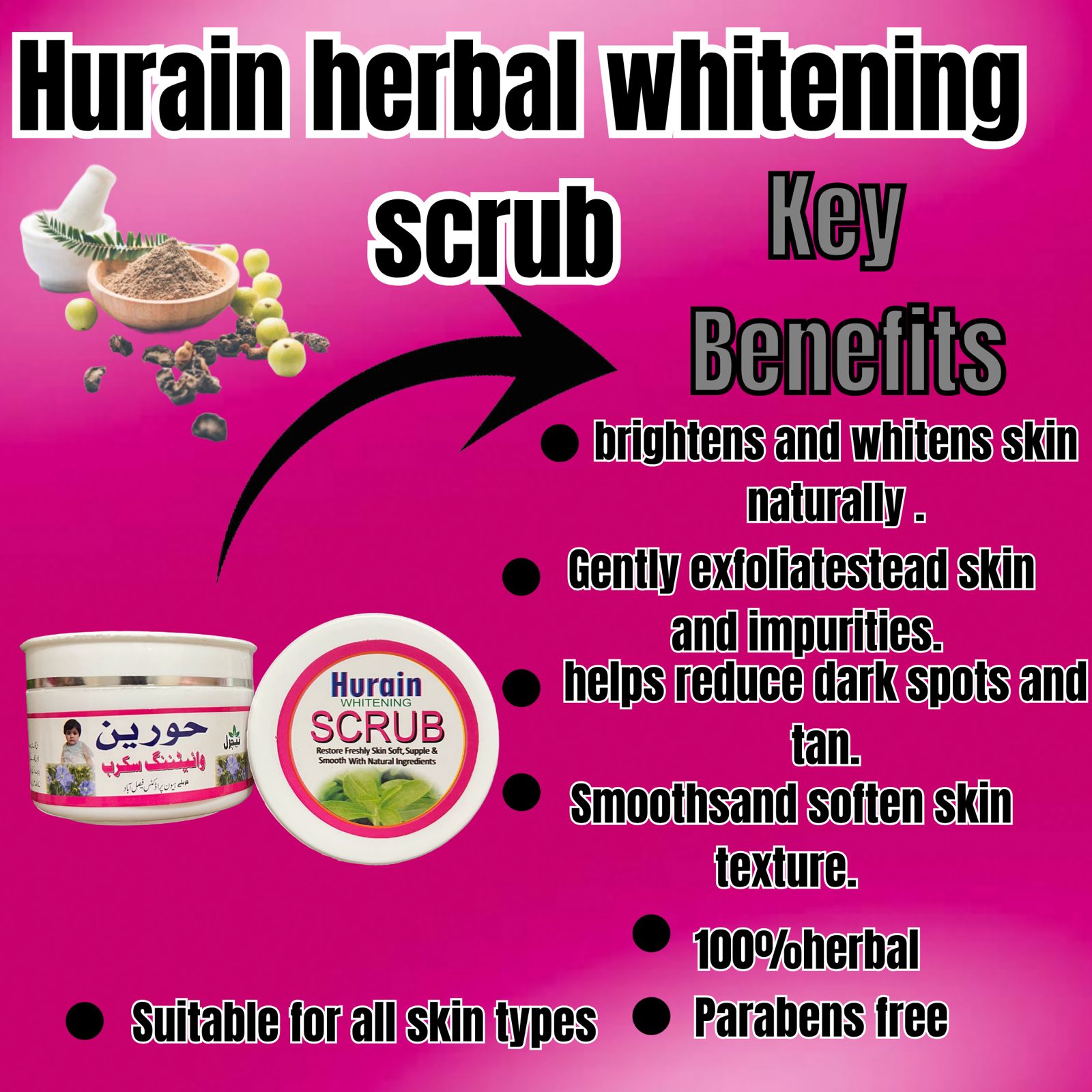 Refresh and brighten your skin with Hurain Herbal Whitening Scrub, a gentle exfoliating formula made with pure herbal ingredients that remove dead skin cells, blackheads, and impurities — giving your skin a radiant, even-toned glow.